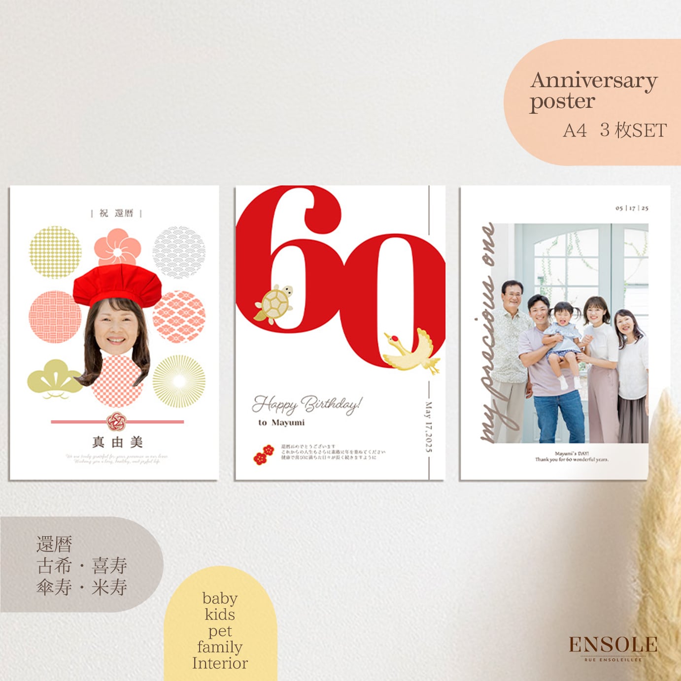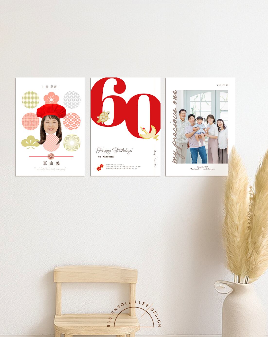 大切な方の60歳の節目を、あたたかく、華やかに彩る還暦祝いのポスター。