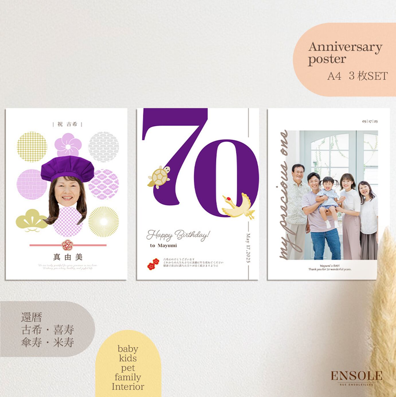 古希&喜寿 ポスター 【Tender Age-70・77】3枚セット